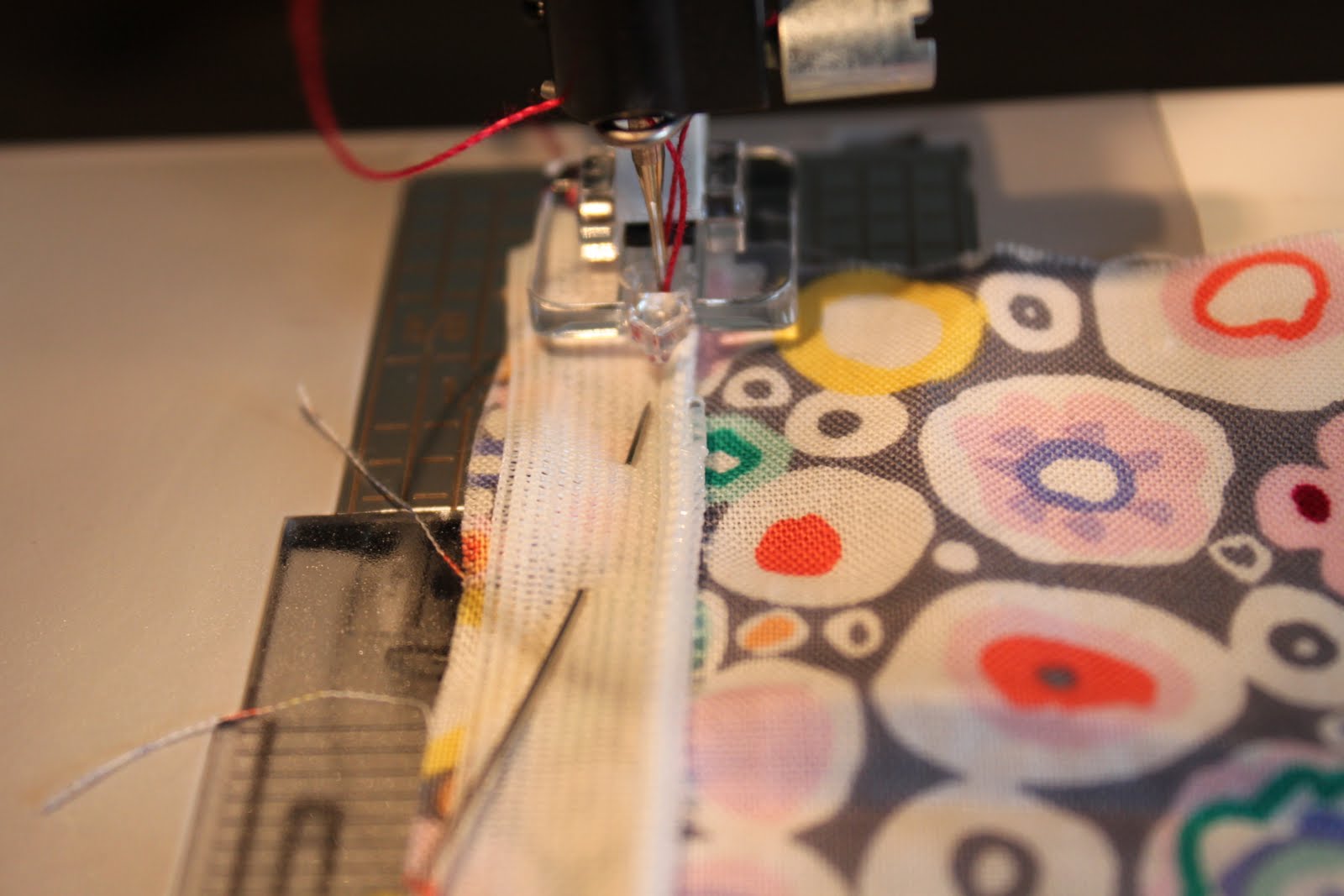 Det allra sista syr du ihop med en vanlig blixtlåspressarfot. Här har jag lagt till stygn i mitt bildbehandlingsprogram för att tydligöra vart man syr.